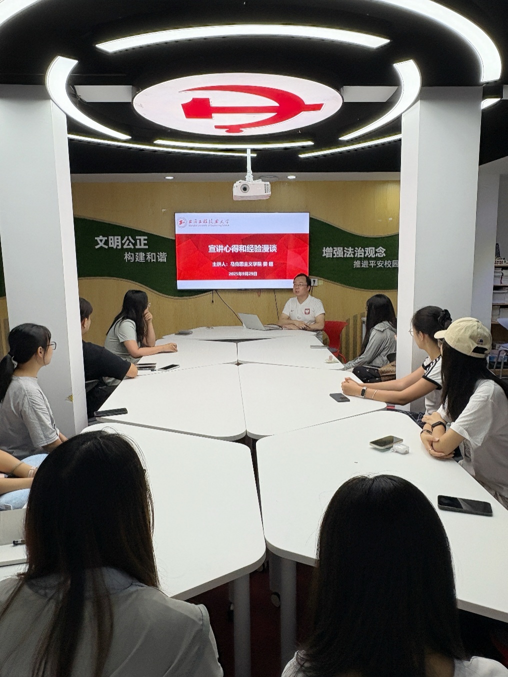 为深入学习宣传贯彻党的创新理论,强化青年学生思想政治引领,推动理论宣讲走深走实走心,进一步提升“青思青享”马院青年宣讲团成员的宣讲能力与实战水平,为后续开展优质宣讲筑牢基础,9月29日下午,宣讲团宣讲经验分享会在一站式学生服务社区红心筑梦空间顺利举行。此次活动由马克思主义学院辅导员郑文静老师主持,特邀学院“上海青年讲师团”成员姜超老师主讲,宣讲团全体成员共同参与。