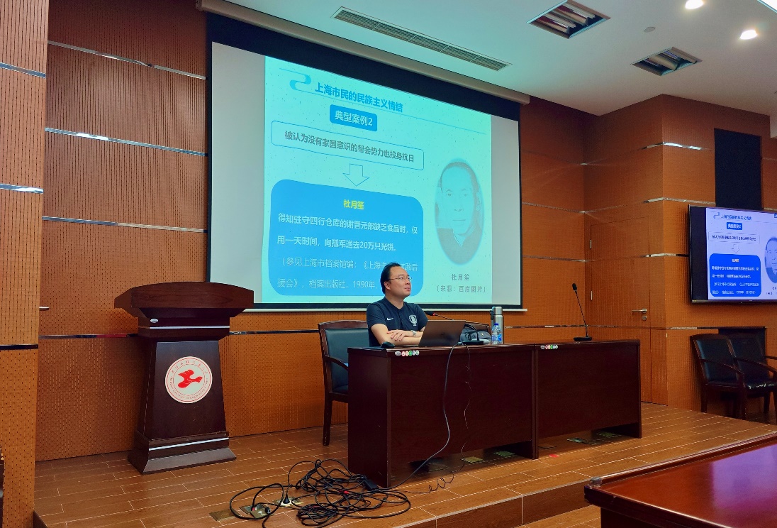参观展览后,学生在上海工程技术大学航飞楼报告厅聆听由姜超老师主讲的微讲座《伟大抗战精神典范——八百壮士坚守四行仓库》。该讲座讲述在爱国主义和民族主义精神的支撑下,守卫四行仓库的中国军人抱着必死之心与日军殊死搏斗、上海广大市民通过各种方式支援守卫四行仓库的中国军人,四行仓库保卫战取得胜利。四行仓库保卫战彰显了在敌强我弱的不利条件下中国军民团结一致抵御外来侵略的伟大抗战精神。