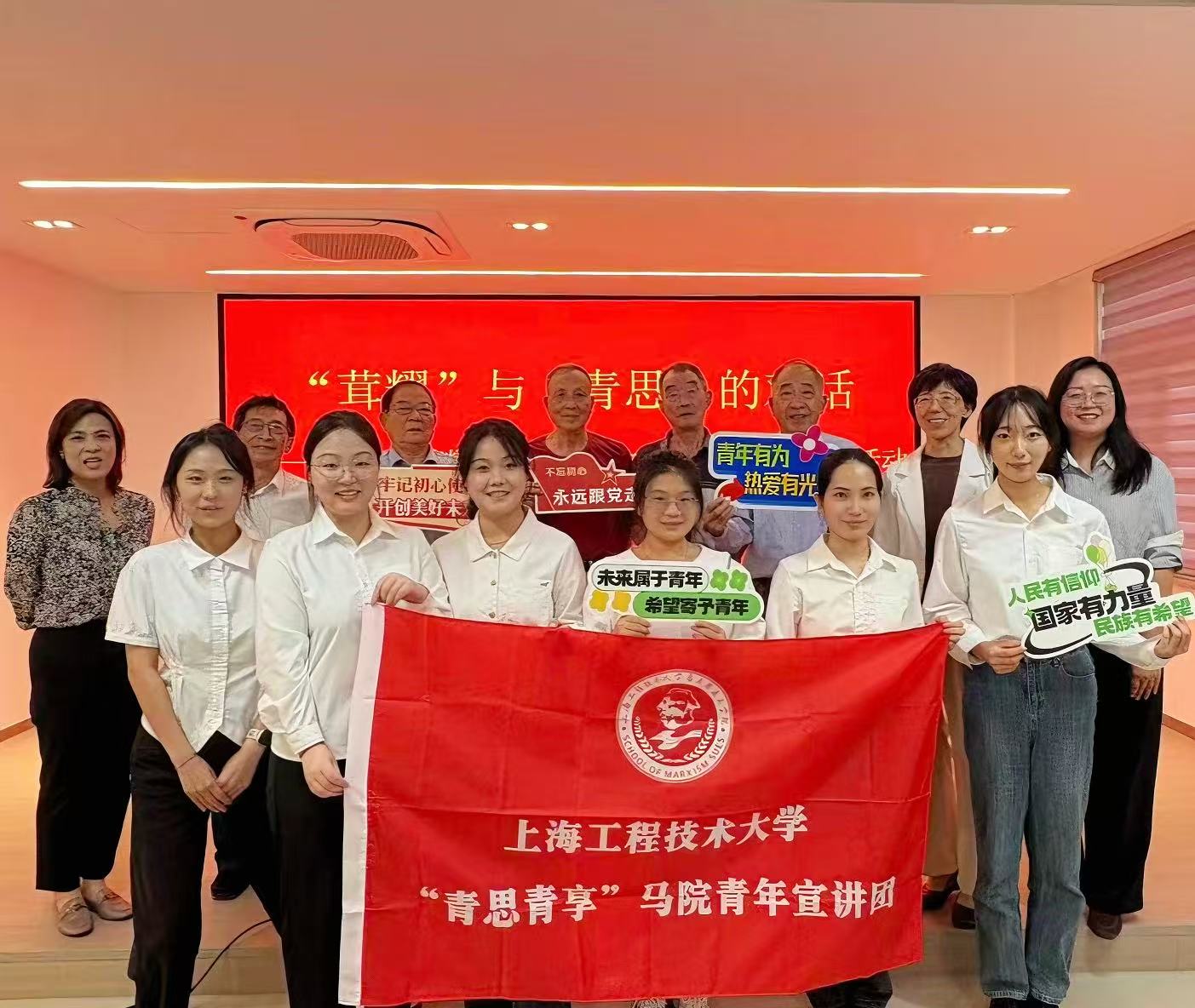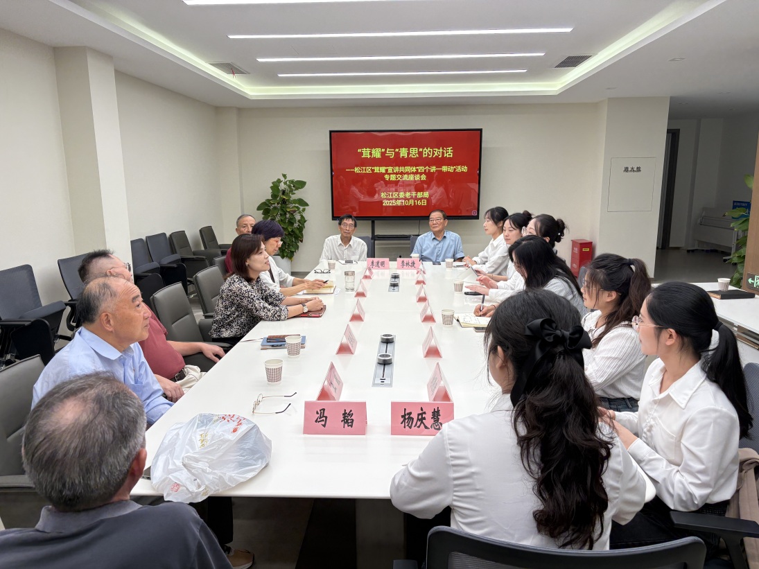 为进一步传承红色基因、弘扬优秀文化,深化校地合作交流,2025年10月16日下午马克思主义学院学工组长郑文静老师带领学院“青思青享”青年宣讲团代表前往松江区老干部局开展走访活动。松江区老干部局副局长王晶、三级调研员马晓燕和茸耀“五老”宣讲团六位老干部共同参与座谈。