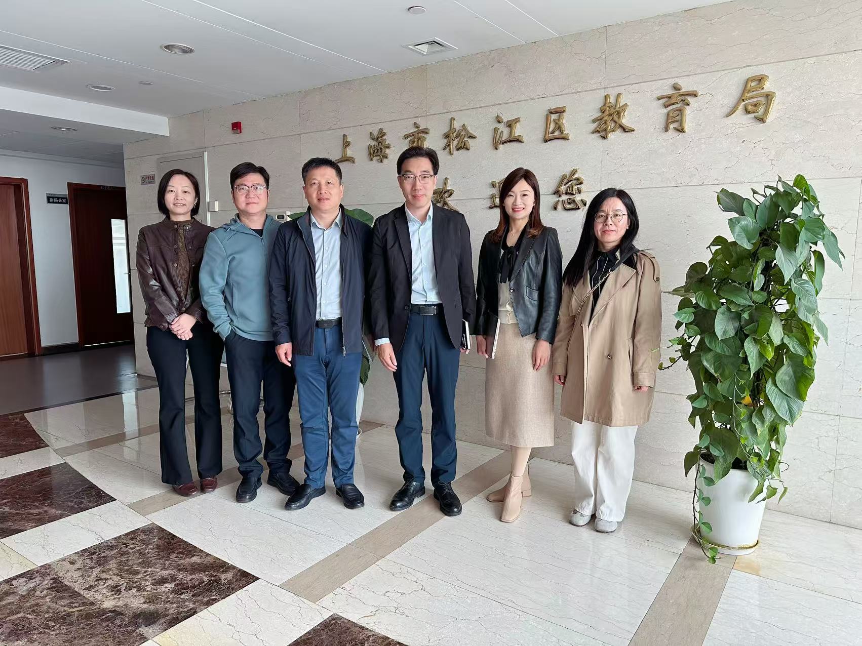 为深入贯彻落实习近平总书记关于教育的重要论述,特别是在学校思想政治理论课教师座谈会上的重要讲话精神,全面贯彻党的教育方针,落实立德树人根本任务,构建德智体美劳全面培养的教育体系,10月30日,马克思主义学院党委书记董旖旎、院长严运楼、大中小学思想政治教育一体化名师工作室负责人马可等一行,赴松江区教育局开展座谈交流,旨在加强高校与地方教育深度协同,探索大中小学思想政治教育一体化建设新路径、新范式。松江区教育局副局长朱永、宣传德育科杨洁等领导热情接待并参与交流。