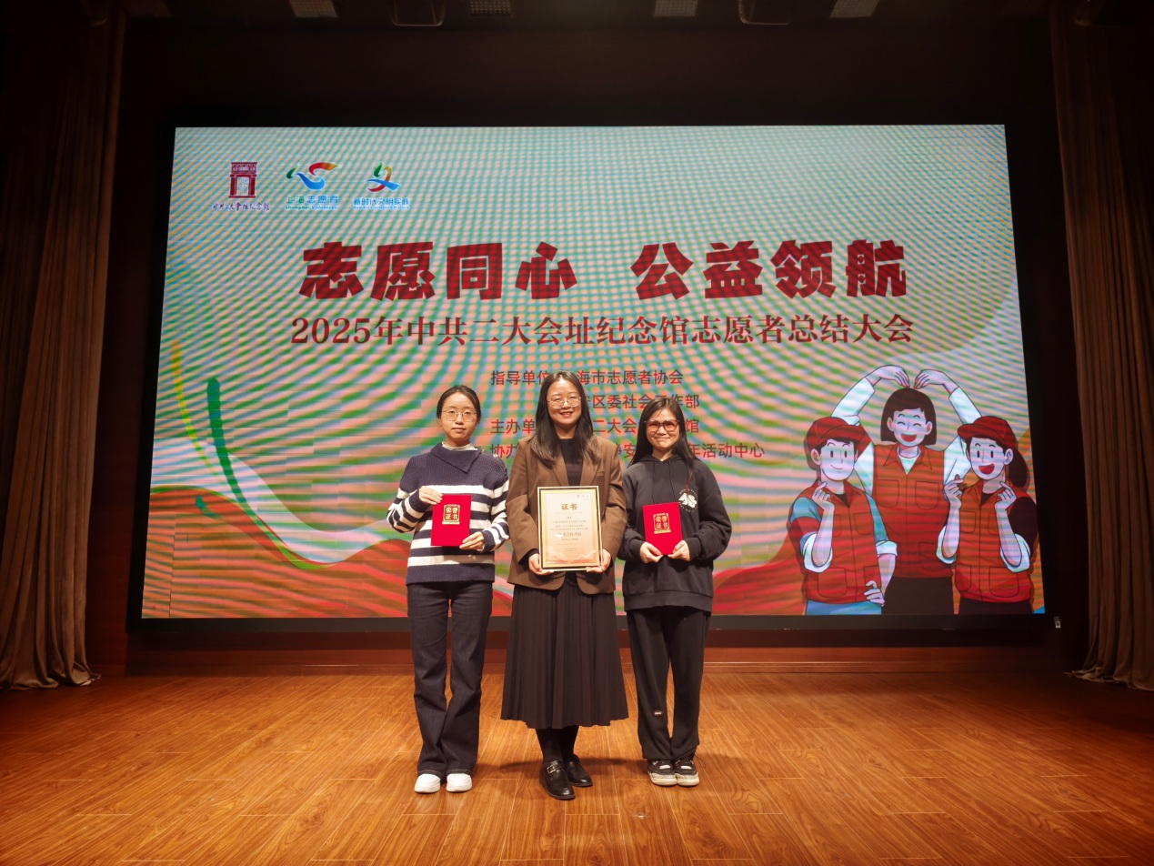 2025年11月15日,中共二大会址纪念馆举行“志愿同心,公益领航”——2025年志愿者总结暨表彰会,上海工程技术大学马克思主义学院在此次志愿者总结暨表彰会中获得“优秀共建单位”称号,安文文、曾田两位同学获“优秀志愿者”称号。