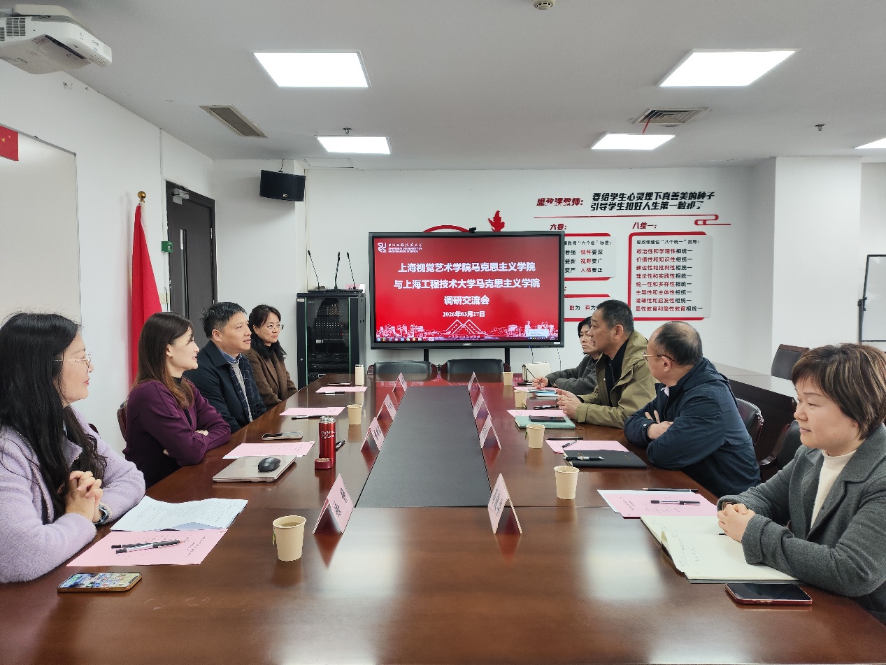 为深入推进新时代马克思主义学院内涵式高质量发展,深化校际思政教育合作,推动党建联建、教学改革、科研创新协同共进,3月27日上午,上海视觉艺术学院马克思主义学院一行到我院开展专题调研交流。学院党委书记董旖旎主持会议,两院相关负责人、教研室主任及骨干教师代表参会。